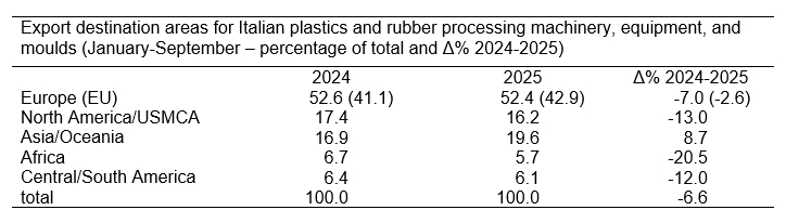 Las exportaciones italianas de maquinaria para plásticos constrastan con los datos del mercado interno, que mantuvo un alto nivel de importaciones, con un crecimiento de dieciséis puntos con respecto a los primeros nueve meses de 2024.